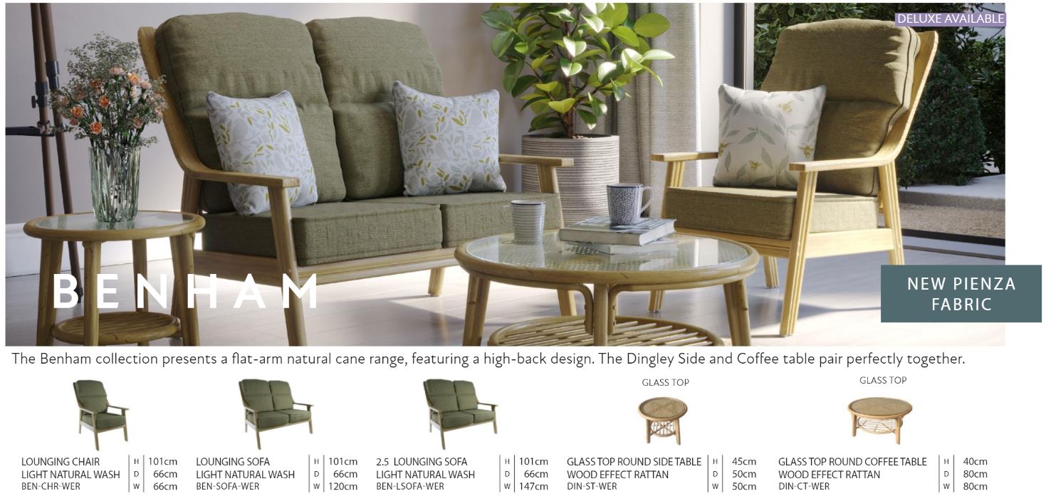 The Benham Collection presents a flat-arm natural cane range, featuring a high back design. The Dingley Side and Coffee table, with French caning weave, pair perfectly together with the Benham range. Benham represents a modern and contemporary take on traditional cane furniture, with a light and airy profile that allows ample light into your room!