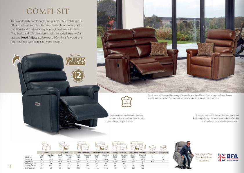 Comfi-Sit was historically one of Sherborne's most popular models. This, however, is the completely new and re-designed Comfi-Sit, which has been totally remodelled and reintroduced with an improved form. This wonderfully comfortable and generously sized design is offered in both durable fabrics and luxurious leathers. Suiting both traditional and contemporary homes, Comfi-Sit features soft, fibre-filled backs and soft 'pillow' arms.