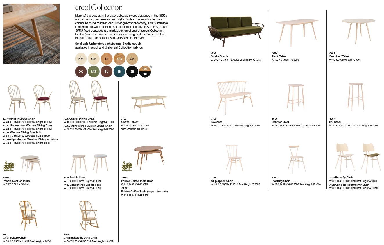Please consult the product brochure attached above for the dimensions and specifications of each item within the Ercol Collection. If you require any further information, about this range or any other, please do feel very welcome to contact us and ask a member of our helpful sales team!