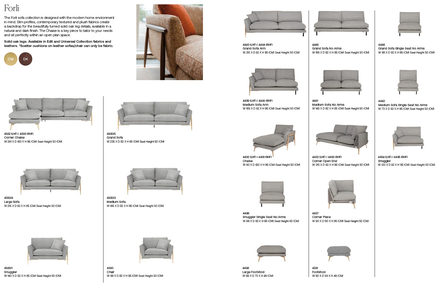 Please consult the product brochure attached above for the dimensions and specifications of each item within the Forli Collection. If you require any further information, about this range or any other, please do feel very welcome to contact us and ask a member of our helpful sales team!