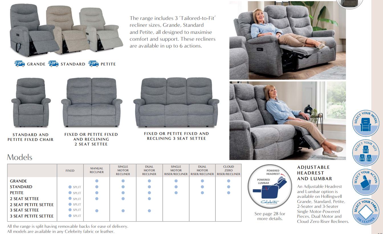 - Celebrity are one of the few manufacturers that offer an optional two-motor recliner chair, where the backrest and footrest operate individually.