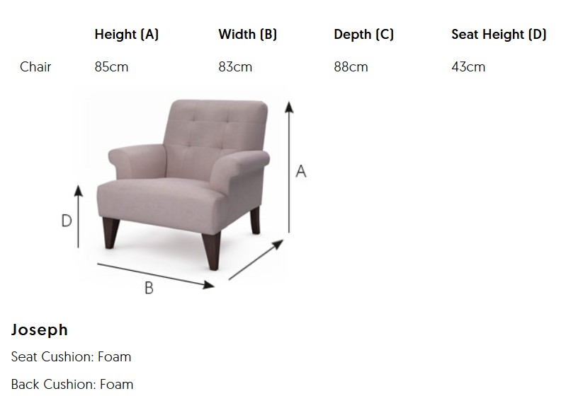 Please consult the product brochure attached above for the dimensions and specifications of the Joseph Chair. If you require any further information, about this range or any other, please do feel very welcome to contact us and ask a member of our helpful sales team!