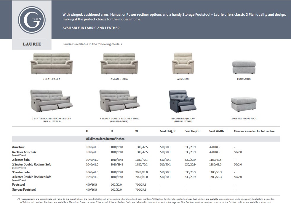 Laurie is the perfect design for the modern home, being both comfortable and inviting! Winged and cushioned arms make for the perfect place to rest on after a long day. Meanwhile cushioned back panels with G Plan's premium fibre fillings make for a lounging experience like no other. Laurie offers tried and tested G Plan quality and design for your living area or open plan space. Choose from a range of beautiful fabrics and leathers to suit your style.