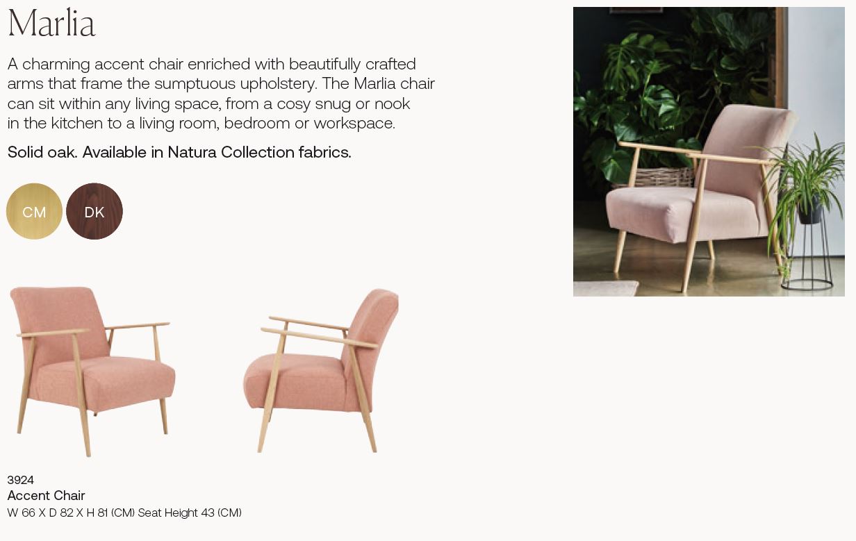 Please be aware that 'Marlia' is still a current range and so it may be possible to buy additional items to go alongside this chair! If you require any further information, please do feel very welcome to contact us and ask a member of our helpful sales team!