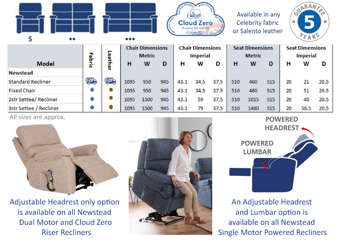 - All Celebrity furniture is supplied with a 5-year guarantee for the frame, actions and motors.