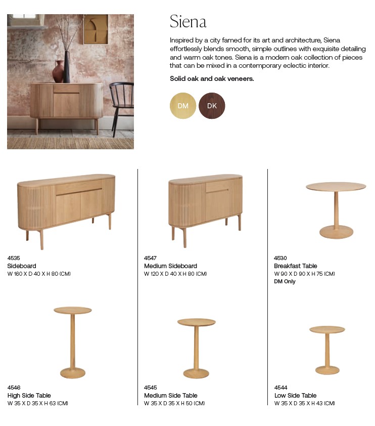 Please consult the product brochure attached above for the dimensions and specifications of each item within the Siena Collection. If you require any further information, about this range or any other, please do feel very welcome to contact us and ask a member of our helpful sales team!