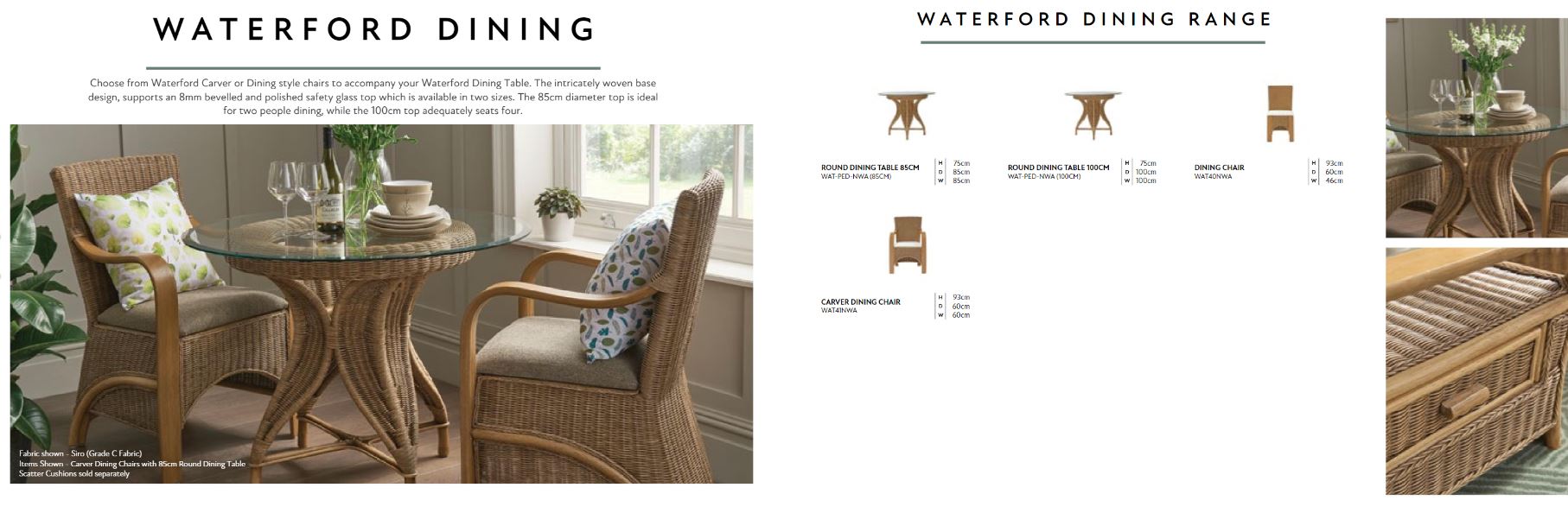 Please consult the product brochure attached above for the dimensions and specifications for the Waterford Dining Collection. If you require any further information, about this range or any other, please do feel very welcome to contact us and ask a member of our helpful sales team!