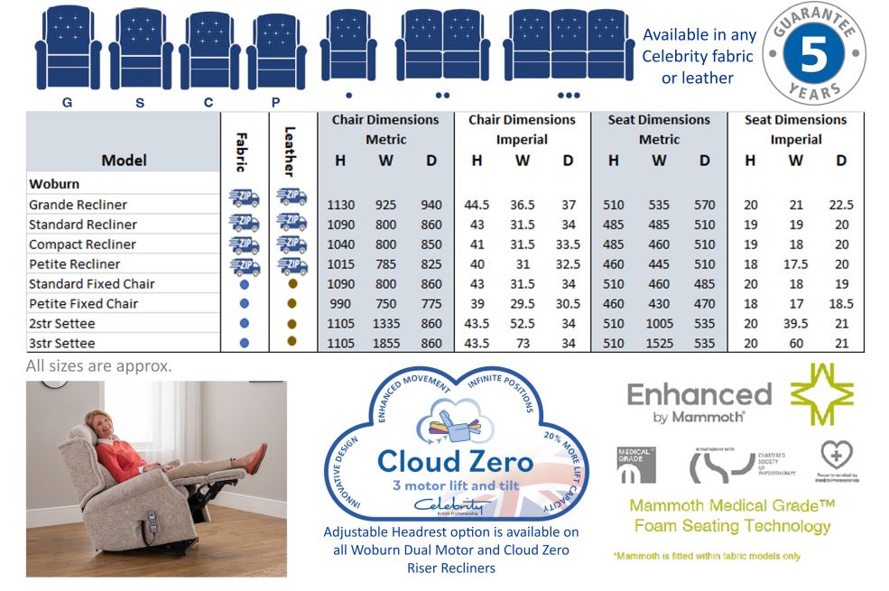 - All fabric Woburn models are fitted with Mammoth Medical Grade Foam Seating Technology as standard, which helps to promote healthy circulation and avoid any areas of pressure build-up.